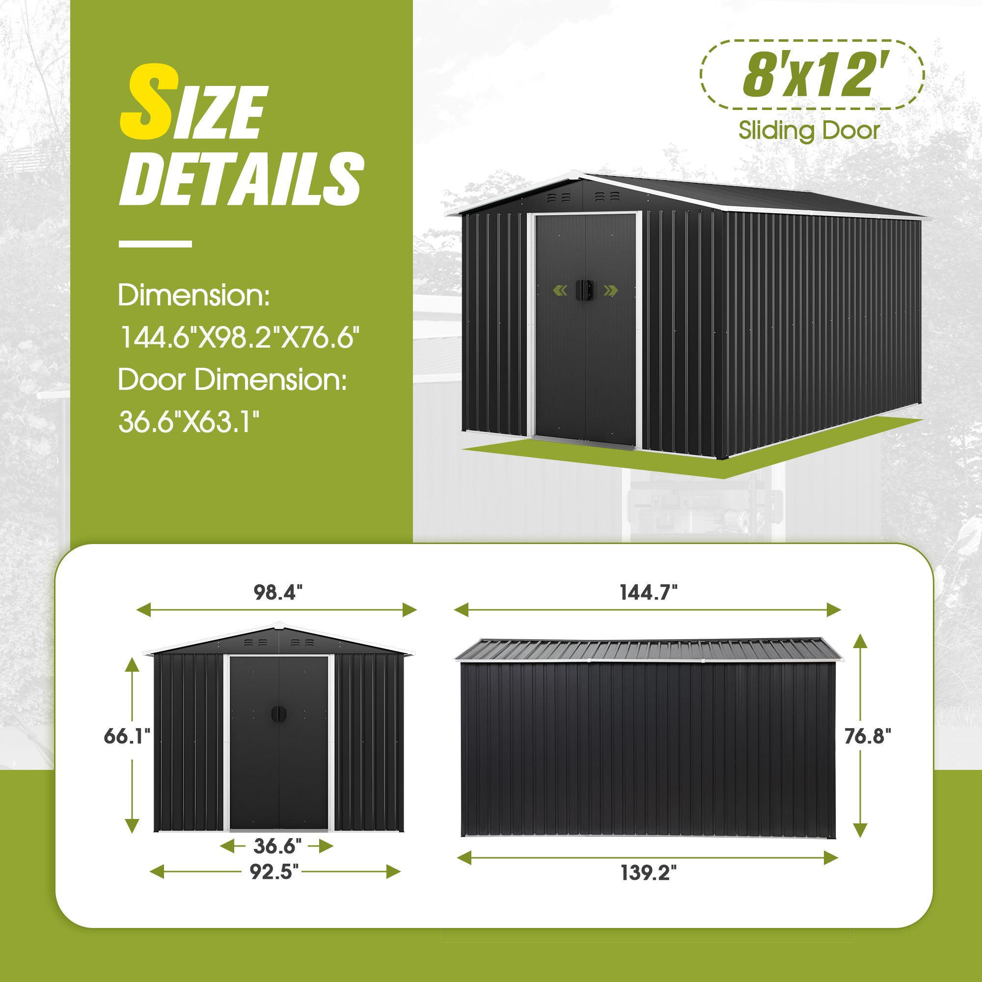 8 x 12 Ft Outdoor Storage Shed, Metal Garden Shed w/ Lockable Sliding Doors, Vents, Large Tool House for Backyard Patio Lawn, Carbon Black 8 x 12 Ft Outdoor Storage Shed, Metal Garden Shed w/ Lockable Sliding Doors, Vents, Large Tool House for Backyard Patio Lawn, Carbon Black 8 x 12 Ft Outdoor Storage Shed, Metal Garden Shed w/ Lockable Sliding Doors, Vents, Large Tool House for Backyard Patio Lawn, Carbon Black 8 x 12 Ft Outdoor Storage Shed, Metal Garden Shed w/ Lockable Sliding Doors, Vents, Large Tool House for Backyard Patio Lawn, Carbon Black 8 x 12 Ft Outdoor Storage Shed, Metal Garden Shed w/ Lockable Sliding Doors, Vents, Large Tool House for Backyard Patio Lawn, Carbon Black 8 x 12 Ft Outdoor Storage Shed, Metal Garden Shed w/ Lockable Sliding Doors, Vents, Large Tool House for Backyard Patio Lawn, Carbon Black