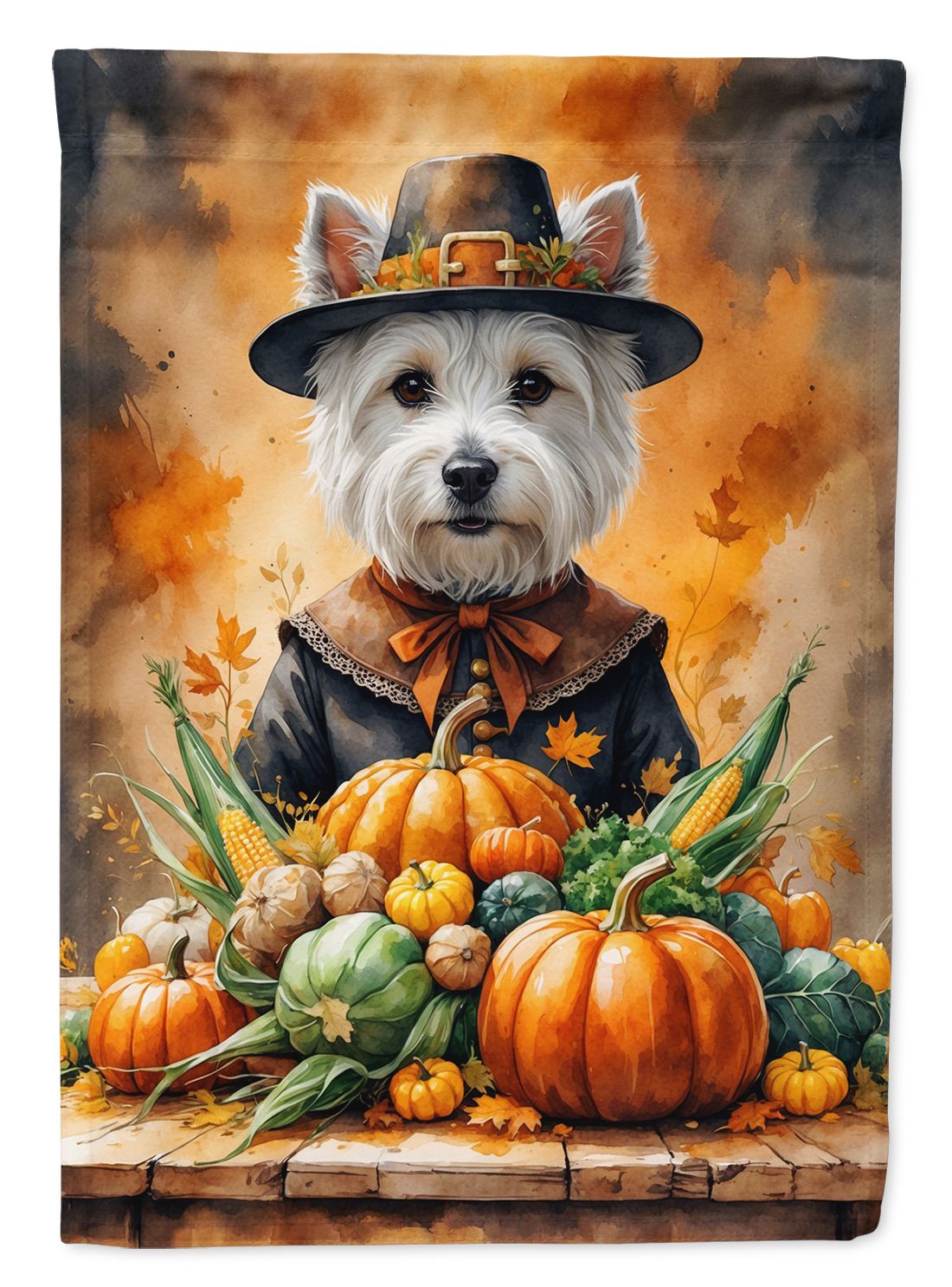 Garden Flag featuring breed specific West Highland White Terrier artwork. Celebrate Thanksgiving with this Thanksgiving Garden Flag. Enhance the beauty of your garden, patio, or yard with Caroline's Treasures Decorative Garden Flag, proudly made in the USA. Crafted from two pieces of thick, double-sided polyester fabric, this 2-ply garden flag is designed to withstand various weather conditions, making it water-resistant and weatherproof. Featuring correctly readable words on both sides, this garden flag offers a delightful visual experience from any angle. With its heavier weight, it stands out among other garden flags, ensuring stability and durability even in wind, rain, and snow. Measuring approximately 11 1/4 inches by 15 1/2 inches, this flag allows you to personalize your outdoor decor. It comes with a 1 1/2-inch sleeve sewn in, allowing easy attachment to any standard garden flag stand or garden size porch hanger (sold separately). Make a statement in your outdoor space with Caroline's Treasures Decorative Garden Flag, a vibrant and high-quality flag that adds color and personality to your surroundings. Proudly made in the USA, it's a symbol of quality craftsmanship and attention to detail.