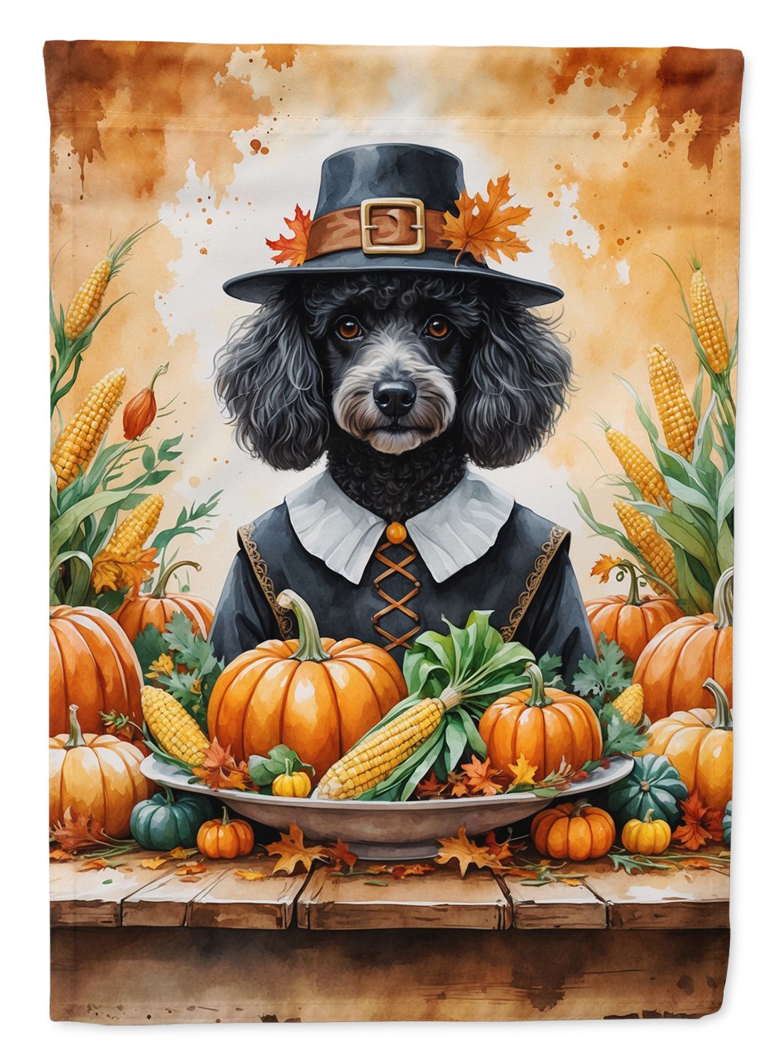 Black Poodle Thanksgiving House Flag Large Porch Sleeve Pole Decorative Outside Yard Banner Artwork Wall Hanging, Polyester, House Size, Multicolor