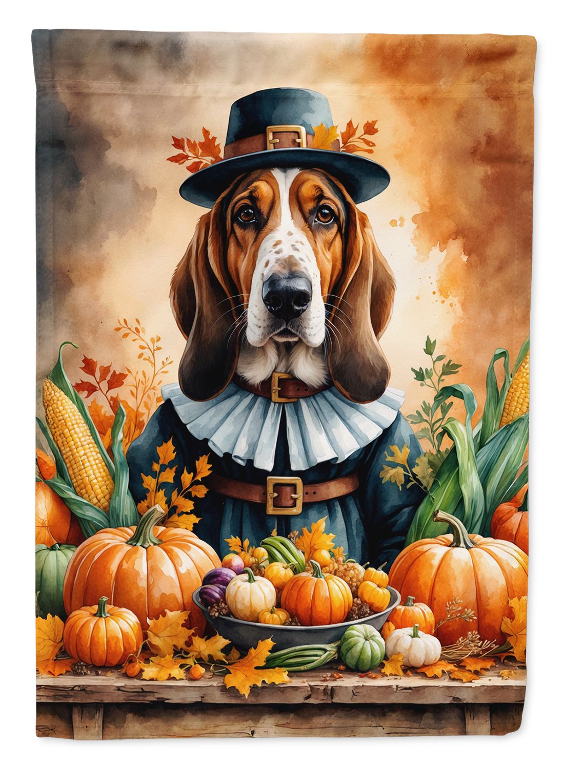 Basset Hound Thanksgiving House Flag Large Porch Sleeve Pole Decorative Outside Yard Banner Artwork Wall Hanging, Polyester, House Size, Multicolor