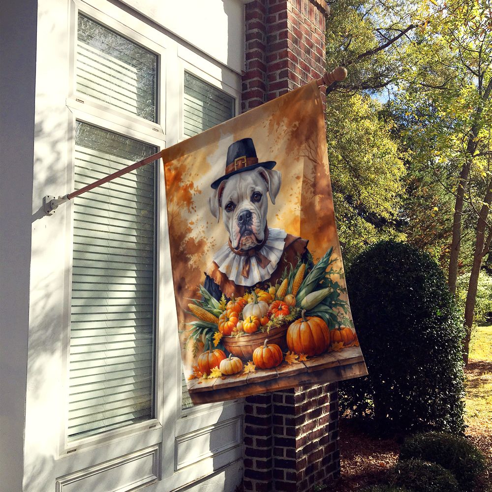 White Boxer Thanksgiving House Flag Large Porch Sleeve Pole Decorative Outside Yard Banner Artwork Wall Hanging, Polyester, House Size, Multicolor