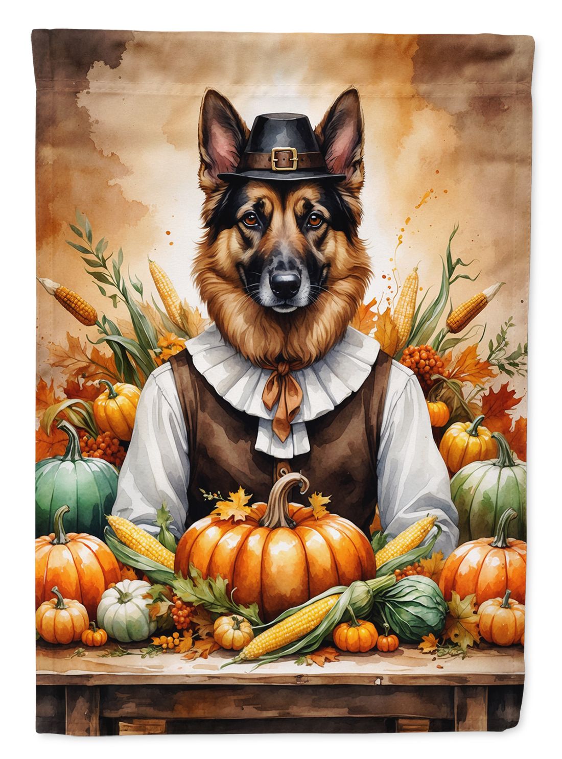 Garden Flag featuring breed specific German Shepherd artwork. Celebrate Thanksgiving with this Thanksgiving Garden Flag. Enhance the beauty of your garden, patio, or yard with Caroline's Treasures Decorative Garden Flag, proudly made in the USA. Crafted from two pieces of thick, double-sided polyester fabric, this 2-ply garden flag is designed to withstand various weather conditions, making it water-resistant and weatherproof. Featuring correctly readable words on both sides, this garden flag offers a delightful visual experience from any angle. With its heavier weight, it stands out among other garden flags, ensuring stability and durability even in wind, rain, and snow. Measuring approximately 11 1/4 inches by 15 1/2 inches, this flag allows you to personalize your outdoor decor. It comes with a 1 1/2-inch sleeve sewn in, allowing easy attachment to any standard garden flag stand or garden size porch hanger (sold separately). Make a statement in your outdoor space with Caroline's Treasures Decorative Garden Flag, a vibrant and high-quality flag that adds color and personality to your surroundings. Proudly made in the USA, it's a symbol of quality craftsmanship and attention to detail.