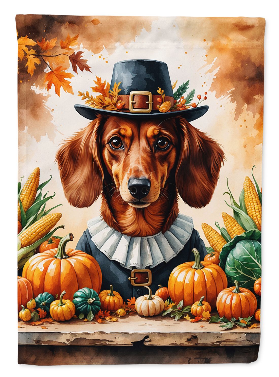 Garden Flag featuring breed specific Dachshund artwork. Celebrate Thanksgiving with this Thanksgiving Garden Flag. Enhance the beauty of your garden, patio, or yard with Caroline's Treasures Decorative Garden Flag, proudly made in the USA. Crafted from two pieces of thick, double-sided polyester fabric, this 2-ply garden flag is designed to withstand various weather conditions, making it water-resistant and weatherproof. Featuring correctly readable words on both sides, this garden flag offers a delightful visual experience from any angle. With its heavier weight, it stands out among other garden flags, ensuring stability and durability even in wind, rain, and snow. Measuring approximately 11 1/4 inches by 15 1/2 inches, this flag allows you to personalize your outdoor decor. It comes with a 1 1/2-inch sleeve sewn in, allowing easy attachment to any standard garden flag stand or garden size porch hanger (sold separately). Make a statement in your outdoor space with Caroline's Treasures Decorative Garden Flag, a vibrant and high-quality flag that adds color and personality to your surroundings. Proudly made in the USA, it's a symbol of quality craftsmanship and attention to detail.