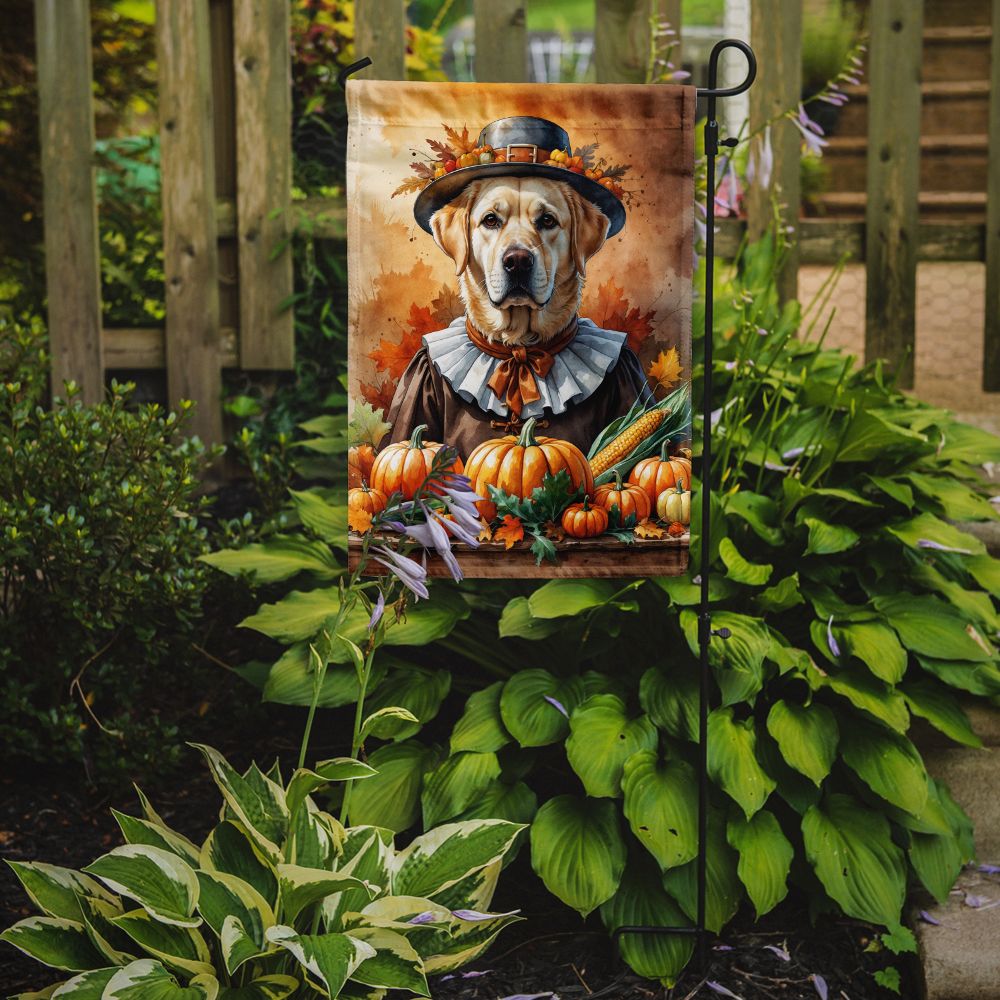 Garden Flag featuring breed specific Labrador Retriever artwork. Celebrate Thanksgiving with this Thanksgiving Garden Flag. Enhance the beauty of your garden, patio, or yard with Caroline's Treasures Decorative Garden Flag, proudly made in the USA. Crafted from two pieces of thick, double-sided polyester fabric, this 2-ply garden flag is designed to withstand various weather conditions, making it water-resistant and weatherproof. Featuring correctly readable words on both sides, this garden flag offers a delightful visual experience from any angle. With its heavier weight, it stands out among other garden flags, ensuring stability and durability even in wind, rain, and snow. Measuring approximately 11 1/4 inches by 15 1/2 inches, this flag allows you to personalize your outdoor decor. It comes with a 1 1/2-inch sleeve sewn in, allowing easy attachment to any standard garden flag stand or garden size porch hanger (sold separately). Make a statement in your outdoor space with Caroline's Treasures Decorative Garden Flag, a vibrant and high-quality flag that adds color and personality to your surroundings. Proudly made in the USA, it's a symbol of quality craftsmanship and attention to detail.