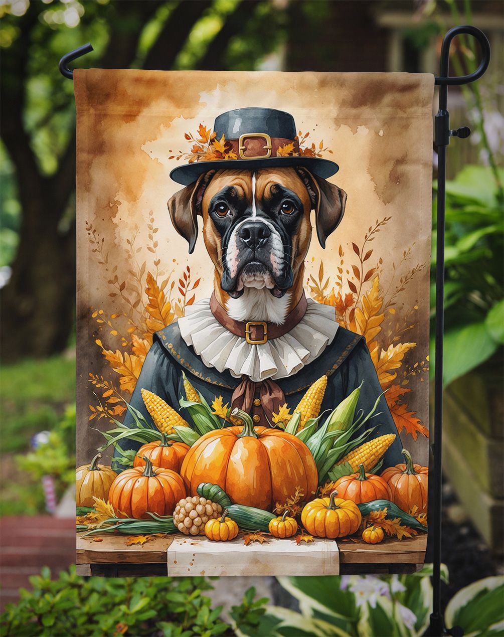 Garden Flag featuring breed specific Boxer artwork. Celebrate Thanksgiving with this Thanksgiving Garden Flag. Enhance the beauty of your garden, patio, or yard with Caroline's Treasures Decorative Garden Flag, proudly made in the USA. Crafted from two pieces of thick, double-sided polyester fabric, this 2-ply garden flag is designed to withstand various weather conditions, making it water-resistant and weatherproof. Featuring correctly readable words on both sides, this garden flag offers a delightful visual experience from any angle. With its heavier weight, it stands out among other garden flags, ensuring stability and durability even in wind, rain, and snow. Measuring approximately 11 1/4 inches by 15 1/2 inches, this flag allows you to personalize your outdoor decor. It comes with a 1 1/2-inch sleeve sewn in, allowing easy attachment to any standard garden flag stand or garden size porch hanger (sold separately). Make a statement in your outdoor space with Caroline's Treasures Decorative Garden Flag, a vibrant and high-quality flag that adds color and personality to your surroundings. Proudly made in the USA, it's a symbol of quality craftsmanship and attention to detail.
