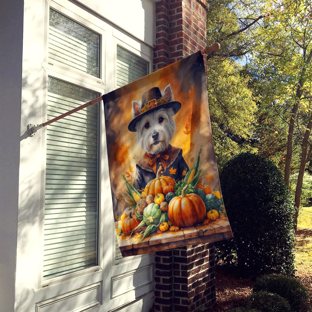 House Flag featuring breed specific West Highland White Terrier artwork. Celebrate Thanksgiving with this Thanksgiving Large Flag. Presenting our Heavy Duty Polyester House Size Decorative Sleeve Pole Flag, a vibrant addition to enhance the aesthetic appeal of your home. This large decorative flag, measuring approximately 28 x 40 inches, offers ample coverage and visibility. Each flag is meticulously sewn and made individually, ensuring a unique piece that may slightly vary in size. It's a sleeve pole flag, designed to fit a standard decorative flag pole effortlessly. Please note that the flag pole and bracket are not included and should be purchased separately. What sets our flag apart is its dual-sided print. The design is mirrored on both sides of the fabric, allowing for uniform visibility regardless of the angle. Printed in full color, our flag showcases vibrant hues that truly stand out. To ensure lasting vibrancy and durability, the dyes are heat-set into the fabric. This ensures your flag remains bright and captivating through various weather conditions. Elevate the look of your home with our Heavy Duty Polyester House Size Decorative Sleeve Pole Flag!