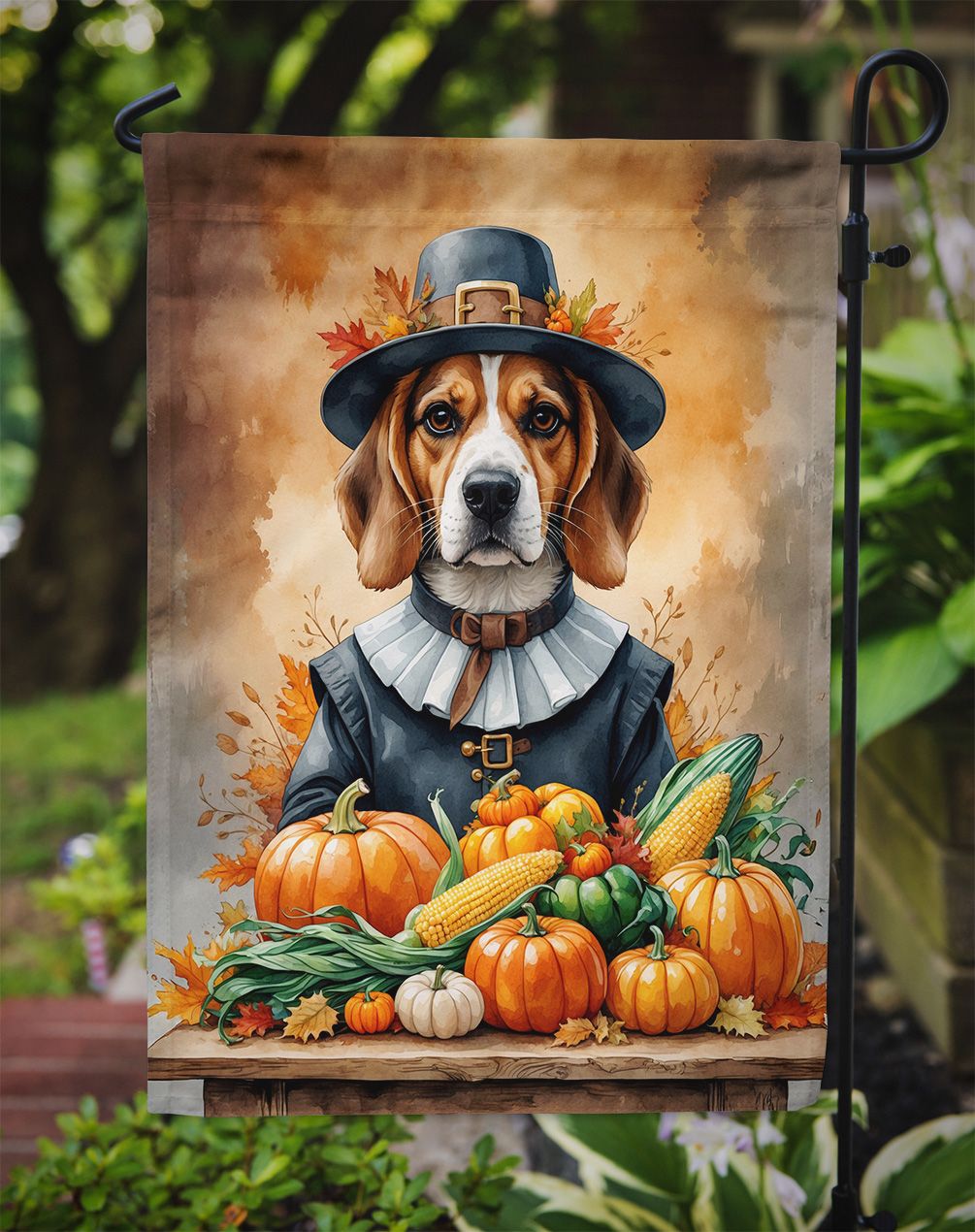 Garden Flag featuring breed specific Beagle artwork. Celebrate Thanksgiving with this Thanksgiving Garden Flag. Enhance the beauty of your garden, patio, or yard with Caroline's Treasures Decorative Garden Flag, proudly made in the USA. Crafted from two pieces of thick, double-sided polyester fabric, this 2-ply garden flag is designed to withstand various weather conditions, making it water-resistant and weatherproof. Featuring correctly readable words on both sides, this garden flag offers a delightful visual experience from any angle. With its heavier weight, it stands out among other garden flags, ensuring stability and durability even in wind, rain, and snow. Measuring approximately 11 1/4 inches by 15 1/2 inches, this flag allows you to personalize your outdoor decor. It comes with a 1 1/2-inch sleeve sewn in, allowing easy attachment to any standard garden flag stand or garden size porch hanger (sold separately). Make a statement in your outdoor space with Caroline's Treasures Decorative Garden Flag, a vibrant and high-quality flag that adds color and personality to your surroundings. Proudly made in the USA, it's a symbol of quality craftsmanship and attention to detail.