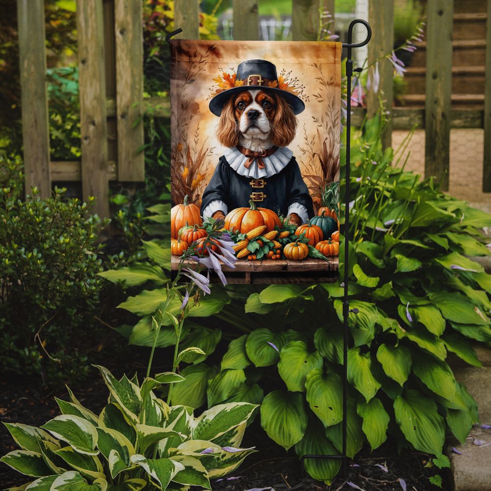 Garden Flag featuring breed specific Cavalier Spaniel artwork. Celebrate Thanksgiving with this Thanksgiving Garden Flag. Enhance the beauty of your garden, patio, or yard with Caroline's Treasures Decorative Garden Flag, proudly made in the USA. Crafted from two pieces of thick, double-sided polyester fabric, this 2-ply garden flag is designed to withstand various weather conditions, making it water-resistant and weatherproof. Featuring correctly readable words on both sides, this garden flag offers a delightful visual experience from any angle. With its heavier weight, it stands out among other garden flags, ensuring stability and durability even in wind, rain, and snow. Measuring approximately 11 1/4 inches by 15 1/2 inches, this flag allows you to personalize your outdoor decor. It comes with a 1 1/2-inch sleeve sewn in, allowing easy attachment to any standard garden flag stand or garden size porch hanger (sold separately). Make a statement in your outdoor space with Caroline's Treasures Decorative Garden Flag, a vibrant and high-quality flag that adds color and personality to your surroundings. Proudly made in the USA, it's a symbol of quality craftsmanship and attention to detail.