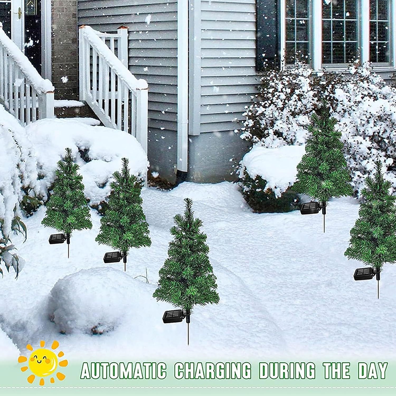 100% PVC��[Good For Christmas Decoration]Each Christmas tree stake with 20 lights and a solar panel.The underground tree stumps are also made of iron, which has stronger stability and won't shake when inserted into the soil. Perfect for the outdoor Christmas decoration,especially for yard/garden and pathway.��[Different Lighting Functions]20 led light in 4 colors (blue ,red , green , warm yellow ), steady or flashing, fast or slow, fade or breath, You can switch freely at the switch and choose your preferred lighting mode.��[Super Waterproof]The product is composed of 20 C6 lamps, which have excellent waterproof performance. Perfect outdoor Christmas decoration, pathway, garden, yard, front door decor. Christmas festival light .��[Solar Powered & EnergySaving]just open solar battery panel switch to on for the first time use and insert it into ground and you will get beautiful night light . No electric wire , Very easy to use,The product uses solar energy, which avoids the trouble of pulling wires, 6-8 hours charging time, lasting for 8-12 hours when fully charged.��[Easy Installation]These solar Christmas pathway lights are easy to install, no extra tools required, just insert the stake into the ground and place the solar panel towards the sunlight, the outdoor Christmas decorative solar lights work well in snowy, windy, rainy days or other bad weather.��[INSTRUCTIONS]NOTICE:Before Using,remove the transparent film of solar panel. ①Attach the pointed ground stake to the bottom of the pole.②Slide the solar panel box into the top of the pole.③Press the ON Button